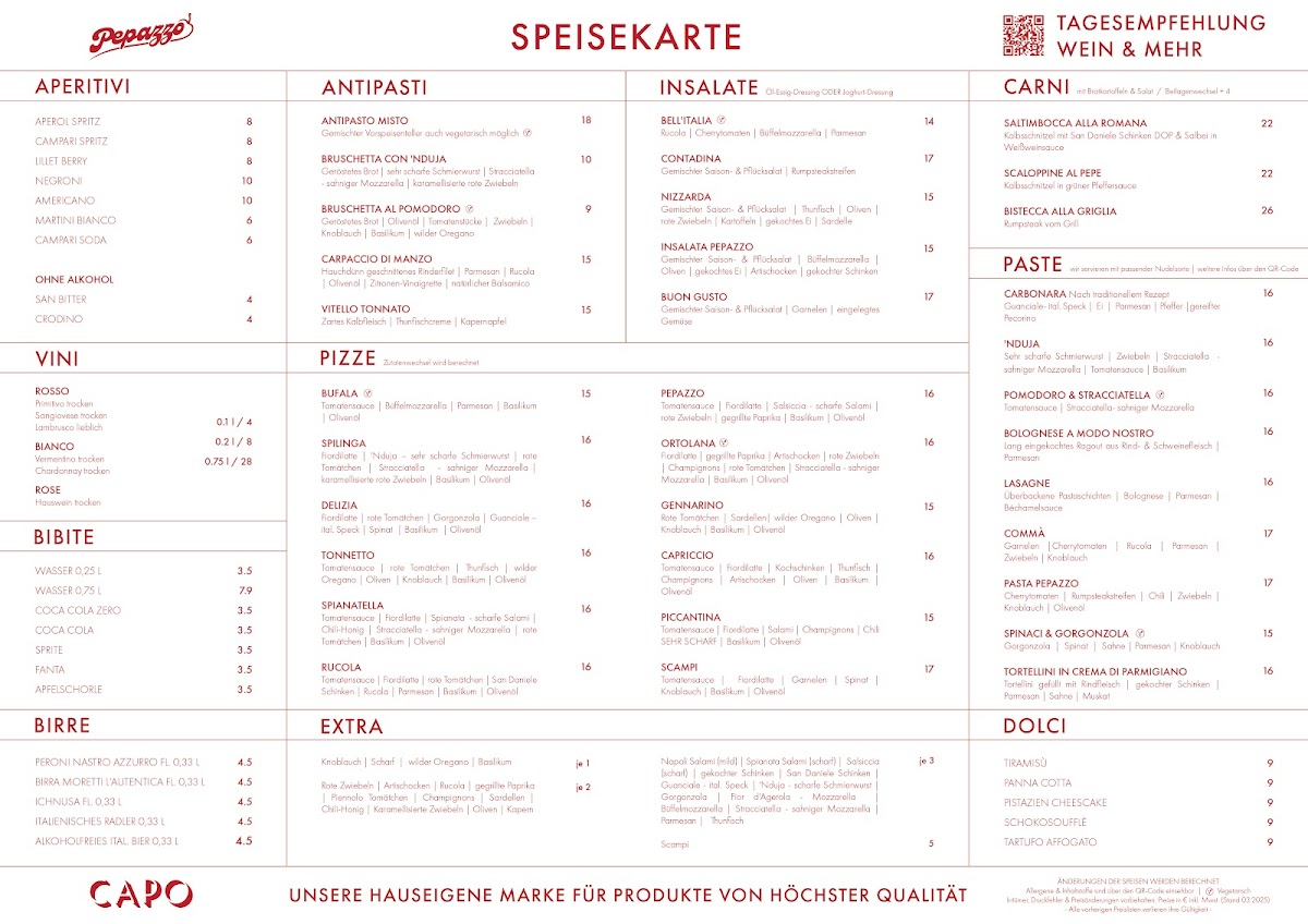 Welcome to Pepazzo Pizzeria • Osteria, nestled in the heart of Eschweiler on Schillerstraße. This delightful eatery transports you straight to Italy with its authentic culinary offerings, revered by patrons who rave about the flavors and ambiance. With an impressive selection of pizzas, including both thick-crust and lighter options, you’re sure to find something that satisfies your cravings. Diners like Boshra Alshar commend the restaurant's classic Italian pizza, while Mattis Vermij notes the delightful salads and unique appetizers that complement the main dishes.